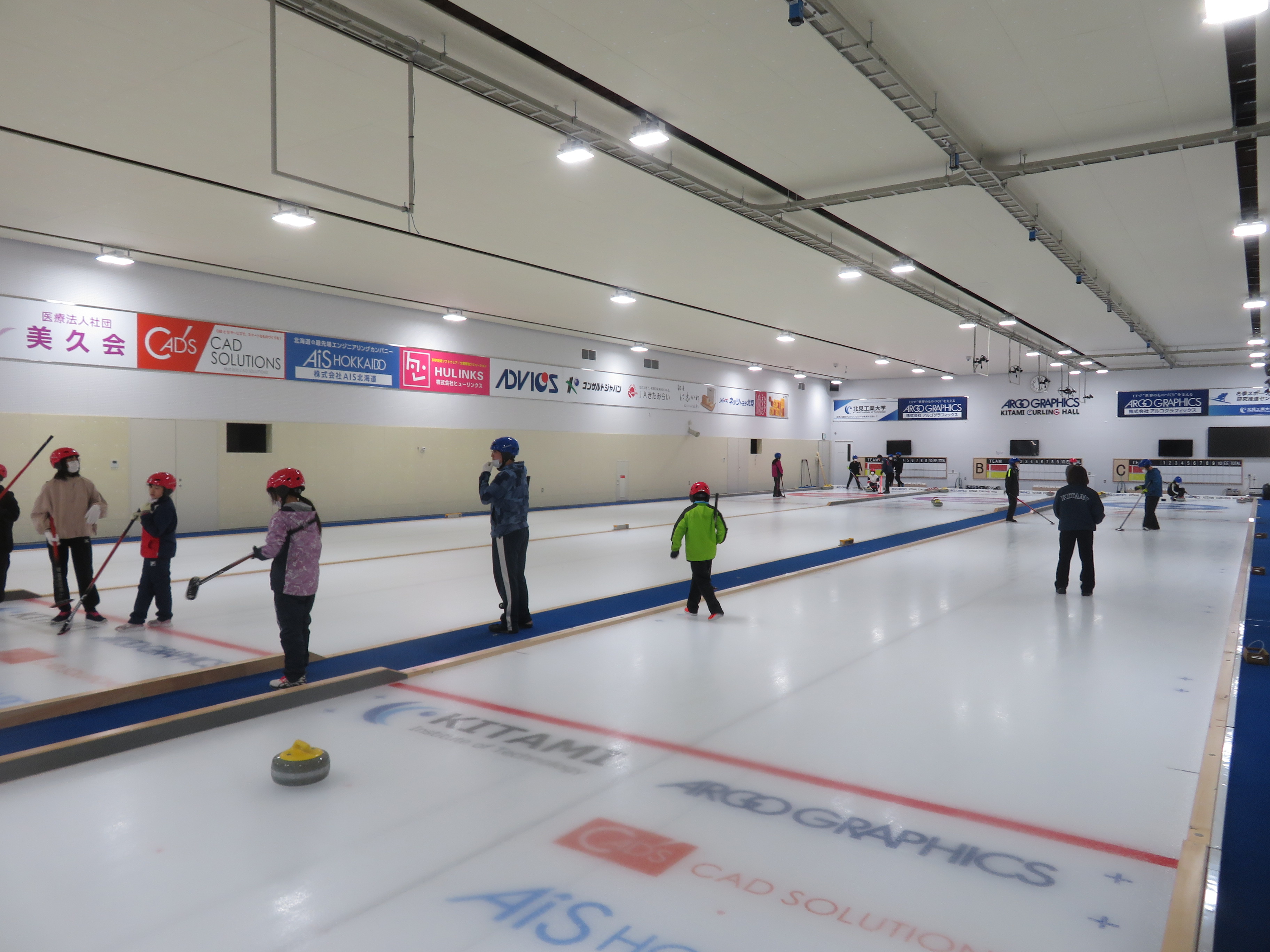 本校では3年生からカーリング授業を行っていますが、体が小さくパワーも足りないために、できても「的あてゲーム」か距離を短くしての「ミニゲーム」です。